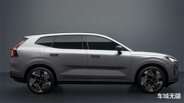 从侧面来看,新车与燃油版的XC60非常接近,但是线条更平直、更具有浓厚的“工业风”、“冷淡风”。细节方面,XC70也沿用了领克08的隐藏式门把手、隐藏水切、无框车门等细节,但搭配的五幅式轮圈更耐看、具有犹如钻石切割一般的质感。